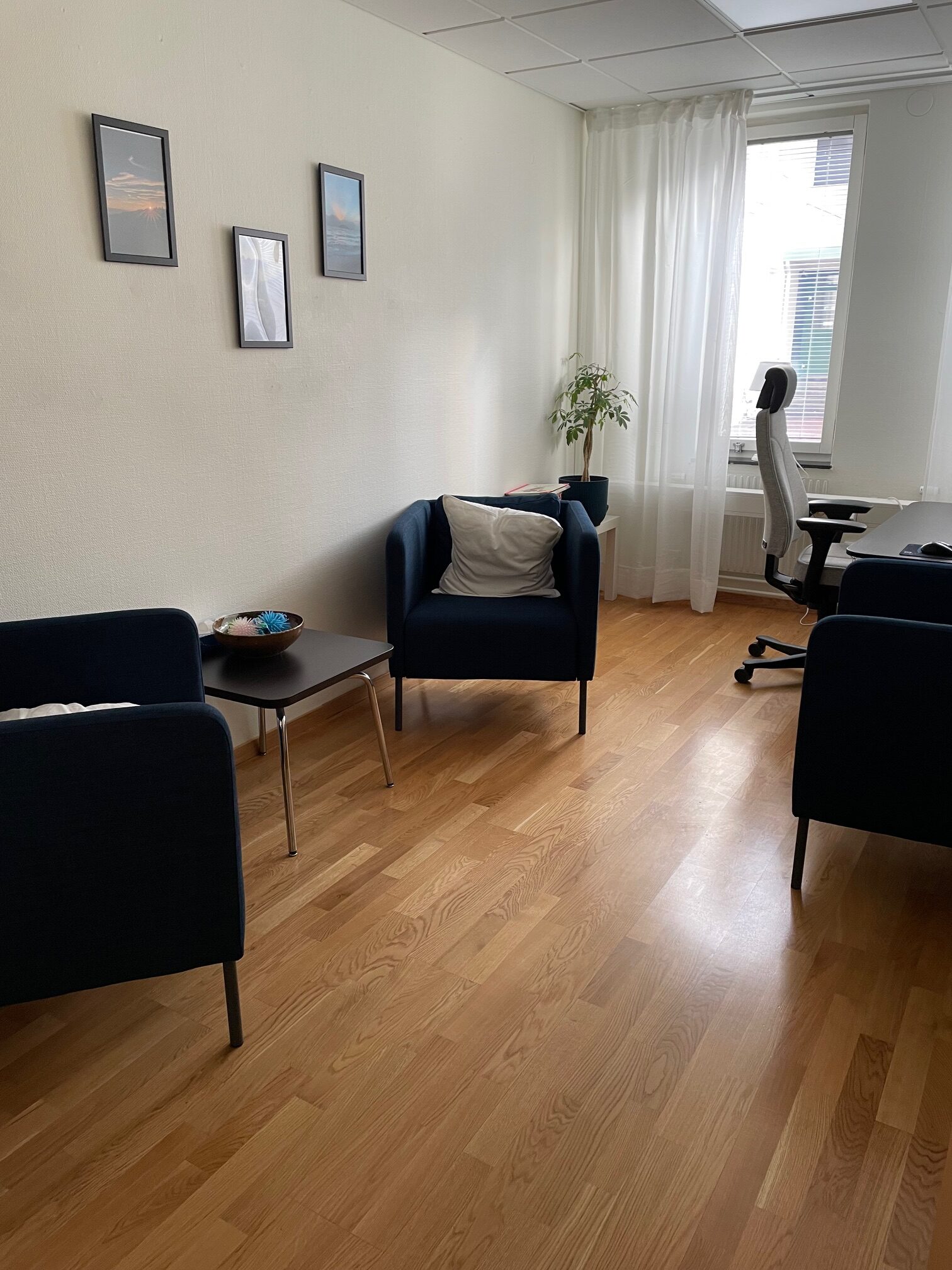 Våra samtalsrum städas en gång i veckan. Det är tillåtet med ledarhund i lokalen. Ledarhund är endast tillåtet i ett av våra samtalsrum.